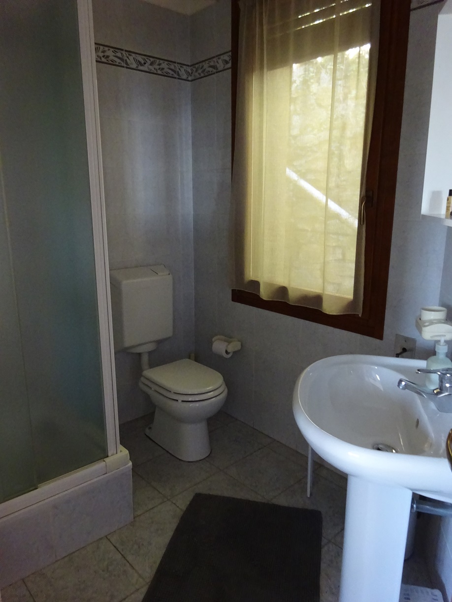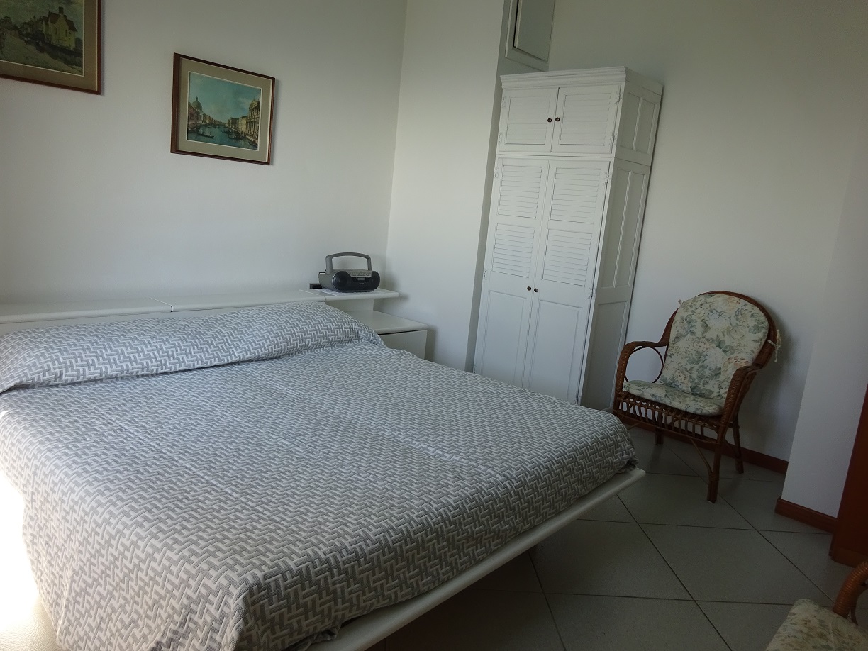 Camera matrimoniale con bagno, piccola ma dotata di tutto il necessario.